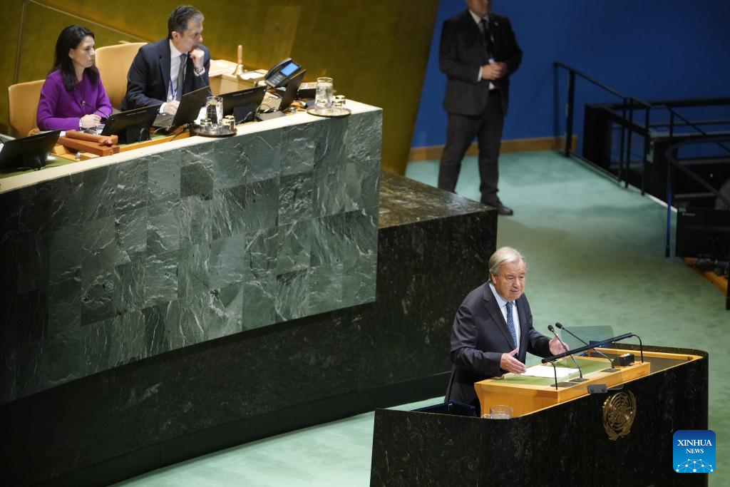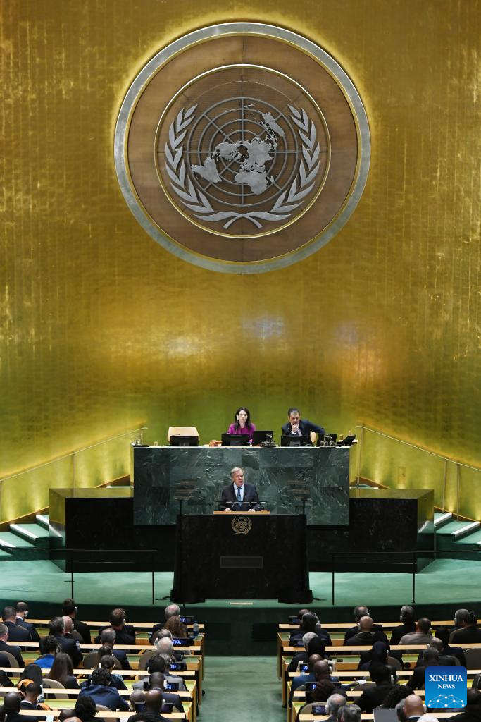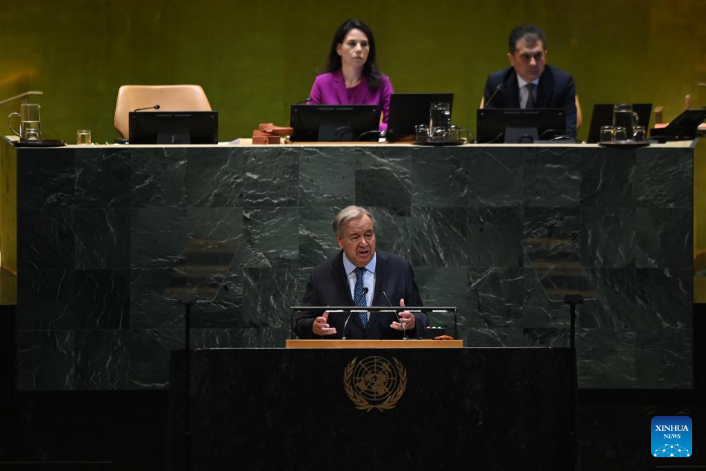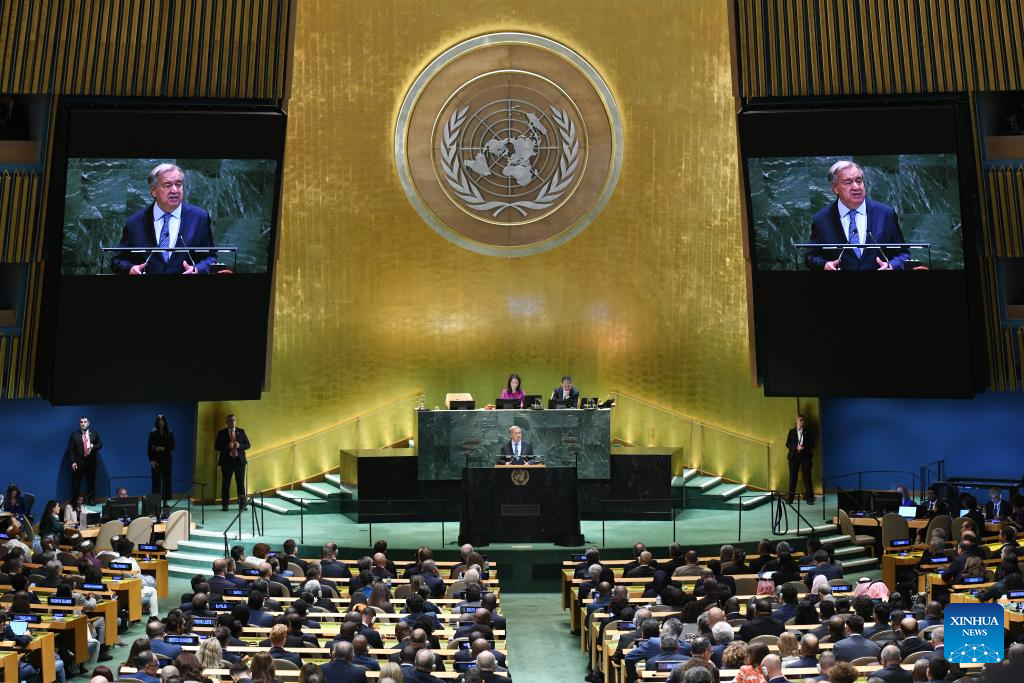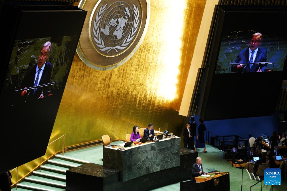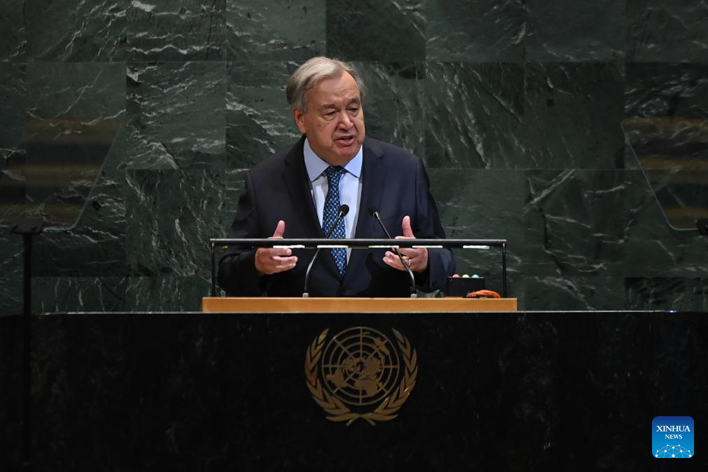 UN Secretary-General Antonio Guterres delivers a speech during the opening of the General Debate of the 80th session of the United Nations General Assembly (UNGA) at the UN headquarters in New York, Sept. 23, 2025. Representatives from United Nations (UN) member states, including some 150 heads of state and government, will take turns at the podium of the UN General Assembly (UNGA) to deliver an address on global issues during the UNGA general debate that kicked off on Tuesday. (Xinhua/Wu Xiaoling)