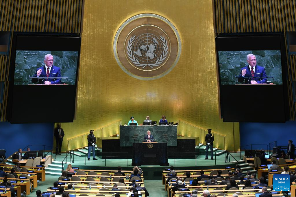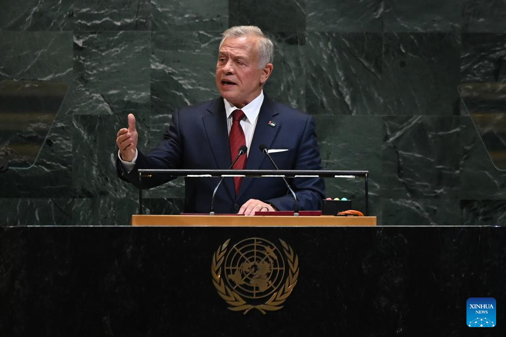 King Abdullah II of Jordan delivers a speech during the General Debate of the 80th session of the United Nations General Assembly (UNGA) at the UN headquarters in New York, Sept. 23, 2025. (Xinhua/Li Rui)