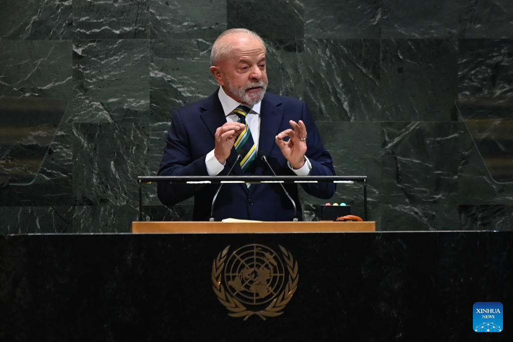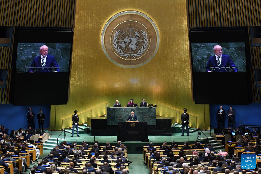 Brazilian President Luiz Inacio Lula da Silva delivers a speech during the General Debate of the 80th session of the United Nations General Assembly (UNGA) at the UN headquarters in New York, Sept. 23, 2025. Representatives from United Nations (UN) member states, including some 150 heads of state and government, will take turns at the podium of the UN General Assembly (UNGA) to deliver an address on global issues during the UNGA general debate that kicked off on Tuesday. (Xinhua/Wu Xiaoling)