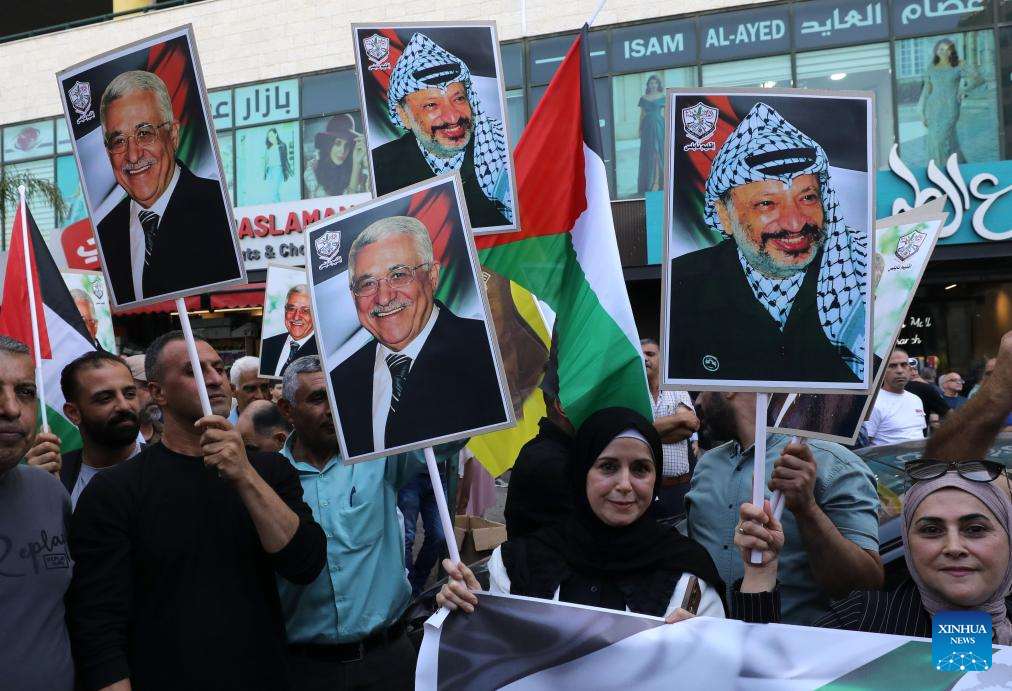 Rallies were held in several cities across the West Bank on Tuesday to celebrate the Western recognition of the State of Palestine and to show solidarity with the people of the Gaza Strip. (Photo by Nidal Eshtayeh/Xinhua)
