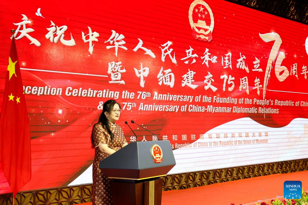 YANGON, Sept. 25 (Xinhua) -- The Chinese Embassy in Myanmar held a reception in Yangon on Wednesday to celebrate the 76th anniversary of the founding of the People's Republic of China (PRC) and the 75th anniversary of the establishment of diplomatic relations between China and Myanmar.