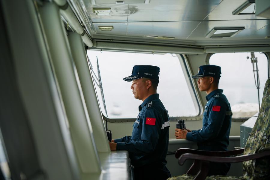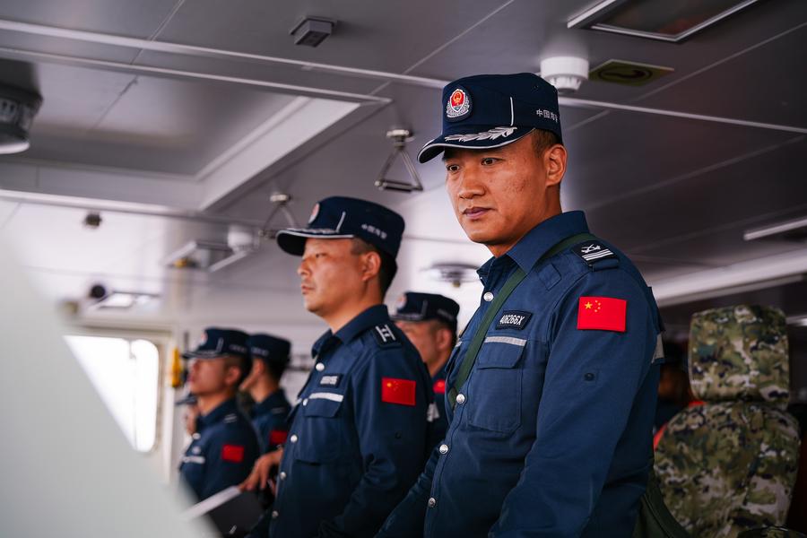 This photo taken aboard China Coast Guard vessel Chigua on Sept. 9, 2025 shows sunset glow over the South China Sea. (Xinhua/Xu Hongyan)Law enforcers stand duty on China Coast Guard vessel Huayang in the South China Sea, on Aug. 9, 2025. (Xinhua/Xu Hongyan)A law enforcer aboard China Coast Guard vessel Huayang stands duty at the pier of the Fifth Bureau of China Coast Guard, on Aug. 6, 2025. (Xinhua/Xu Hongyan)A law enforcer aboard China Coast Guard vessel Huayang monitors a foreign vessel illegally intruding into the waters near China's Ren'ai Jiao, on Aug. 26, 2025. (Xinhua/Xu Hongyan)Law enforcers of the China Coast Guard vessel Chigua conduct law enforcement mission in the South China Sea, on Sept. 4, 2025. (Xinhua/Xu Hongyan)China Coast Guard vessel Dongmen patrols in the South China Sea, on Aug. 18, 2025. (Xinhua/Xu Hongyan)Law enforcers stand duty on China Coast Guard vessel Huayang in the South China Sea, on Aug. 20, 2025. (Xinhua/Xu Hongyan)This photo taken on Sept. 8, 2025 shows a view of the South China Sea. (Xinhua/Xu Hongyan)China Coast Guard vessel Huayang patrols in the South China Sea, on Aug. 18, 2025. (Xinhua/Xu Hongyan)A double rainbow appears in the sky over the South China Sea, on Sept. 2, 2025. (Xinhua/Xu Hongyan)Law enforcers stand duty on China Coast Guard vessel Huayang in waters near Sanya, south China's Hainan Province, on Aug. 6, 2025. (Xinhua/Xu Hongyan)China Coast Guard vessel Chigua patrols in the South China Sea, on Aug. 9, 2025. (Xinhua/Xu Hongyan)China Coast Guard vessel Dahe sails under the moonlight in the South China Sea, on Sept. 11, 2025. (Xinhua/Xu Hongyan)Fishermen wave goodbye to law enforcers on China Coast Guard vessel Huayang in the South China Sea, on Aug. 7, 2025. (Xinhua/Xu Hongyan)■