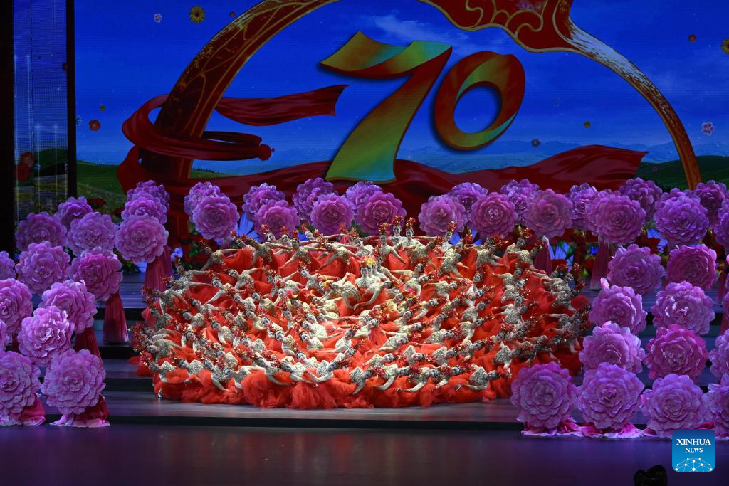 A gala entitled "Beautiful Xinjiang" is held to mark the 70th founding anniversary of Xinjiang Uygur Autonomous Region in Urumqi, the regional capital, Sept. 24, 2025. (Xinhua/Shen Hong)