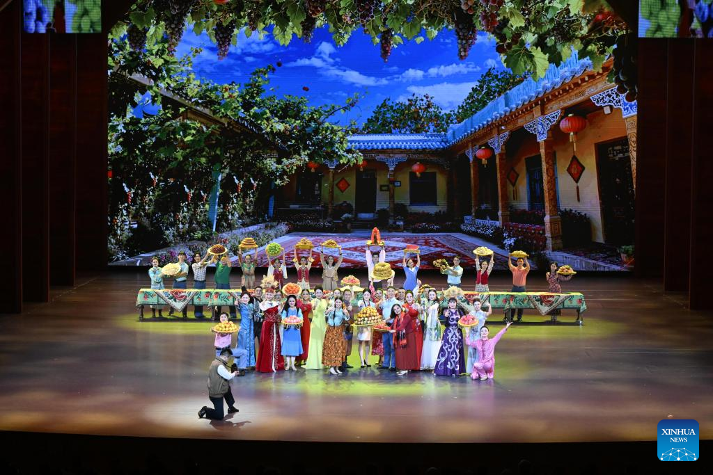 A gala entitled "Beautiful Xinjiang" is held to mark the 70th founding anniversary of Xinjiang Uygur Autonomous Region in Urumqi, the regional capital, Sept. 24, 2025. (Xinhua/Ding Lin)