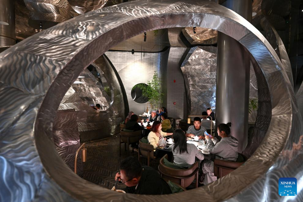 People have meals at a morning tea restaurant in Wuzhong City, northwest China's Ningxia Hui Autonomous Region, Sept. 24, 2025. Blending tea, noodles, beef, snacks and pastry, morning tea is a characteristic culinary culture in Wuzhong City by the Yellow River.