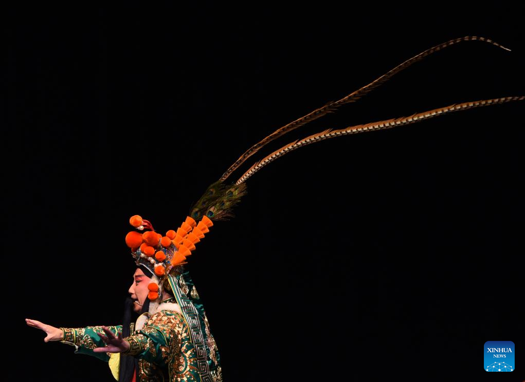 An artist performs Yangju opera in Vienna, Austria, Sept. 23, 2025. Yangju, a genre of traditional Chinese operas, was listed as a national-level intangible cultural heritage in 2006. (Xinhua/He Canling)