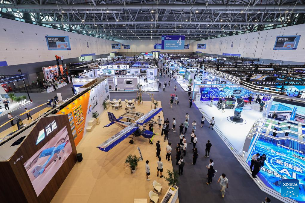 People visit the smart mobility exhibition zone at the 4th Global Digital Trade Expo in Hangzhou, east China's Zhejiang Province, Sept. 25, 2025. The 4th Global Digital Trade Expo, an event that promotes digital trade and industrial cooperation among partners, kicked off in Hangzhou on Thursday, with the participation of more than 1,800 exhibitors. The total exhibition area covers 155,000 square meters. (Xinhua/Xu Yu)