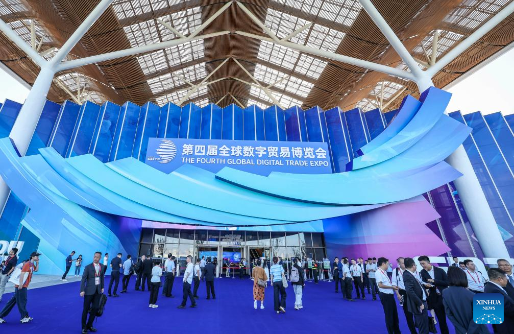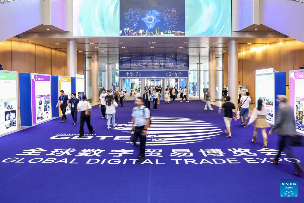 People visit the 4th Global Digital Trade Expo in Hangzhou, east China's Zhejiang Province, Sept. 25, 2025. The 4th Global Digital Trade Expo, an event that promotes digital trade and industrial cooperation among partners, kicked off in Hangzhou on Thursday, with the participation of more than 1,800 exhibitors. The total exhibition area covers 155,000 square meters. (Xinhua/Xu Yu)