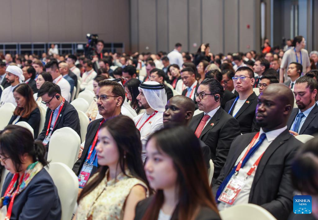 Guests attend a launching ceremony of the 4th Global Digital Trade Expo in Hangzhou, east China's Zhejiang Province, Sept. 25, 2025. The 4th Global Digital Trade Expo, an event that promotes digital trade and industrial cooperation among partners, kicked off in Hangzhou on Thursday, with the participation of more than 1,800 exhibitors. The total exhibition area covers 155,000 square meters. (Xinhua/Xu Yu)