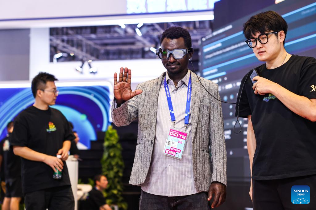 A visitor experiences a pair of smart glasses at the 4th Global Digital Trade Expo in Hangzhou, east China's Zhejiang Province, Sept. 25, 2025. The 4th Global Digital Trade Expo, an event that promotes digital trade and industrial cooperation among partners, kicked off in Hangzhou on Thursday, with the participation of more than 1,800 exhibitors. The total exhibition area covers 155,000 square meters. (Xinhua/Jiang Han)