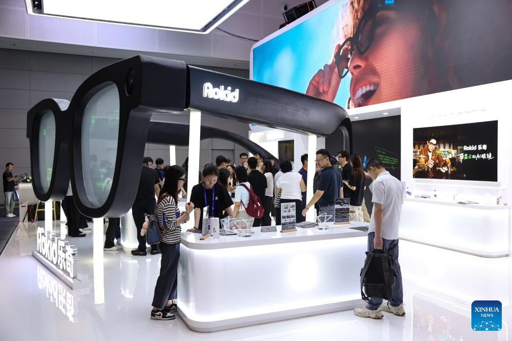 Visitors learn about smart glasses at the 4th Global Digital Trade Expo in Hangzhou, east China's Zhejiang Province, Sept. 25, 2025. The 4th Global Digital Trade Expo, an event that promotes digital trade and industrial cooperation among partners, kicked off in Hangzhou on Thursday, with the participation of more than 1,800 exhibitors. The total exhibition area covers 155,000 square meters. (Xinhua/Jiang Han)