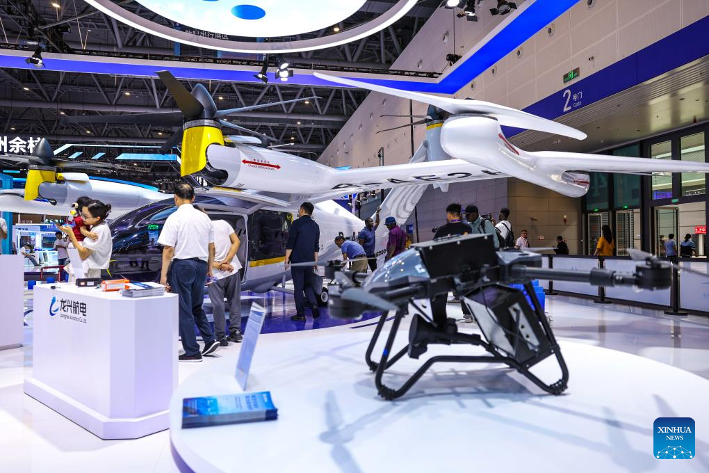 Visitors learn about drone exhibits at the 4th Global Digital Trade Expo in Hangzhou, east China's Zhejiang Province, Sept. 25, 2025. The 4th Global Digital Trade Expo, an event that promotes digital trade and industrial cooperation among partners, kicked off in Hangzhou on Thursday, with the participation of more than 1,800 exhibitors. The total exhibition area covers 155,000 square meters. (Xinhua/Jiang Han)