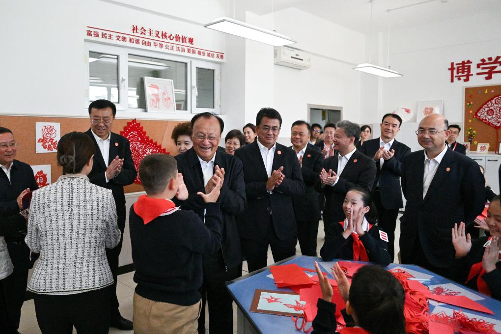 Liu Zhenli and members of a central delegation visit a middle school in Changji, northwest China's Xinjiang Uygur Autonomous Region, Sept. 25, 2025. Entrusted by Xi Jinping, general secretary of the Communist Party of China Central Committee, members of a central delegation on Thursday visited local officials and residents in multiple areas of northwest China's Xinjiang Uygur Autonomous Region. (Xinhua/Wang Peng)
