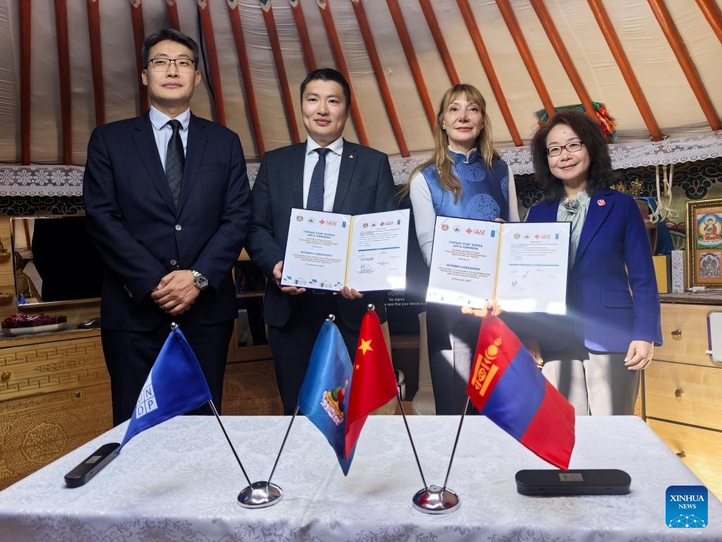 ULAN BATOR, Sept. 26 (Xinhua) -- A signing ceremony for a China-funded project under the Global Development and South-South Cooperation Fund (GDSSCF) was held in Ulan Bator's Chingeltei district, marking the launch of a major initiative to upgrade ger districts through solar photovoltaic systems.