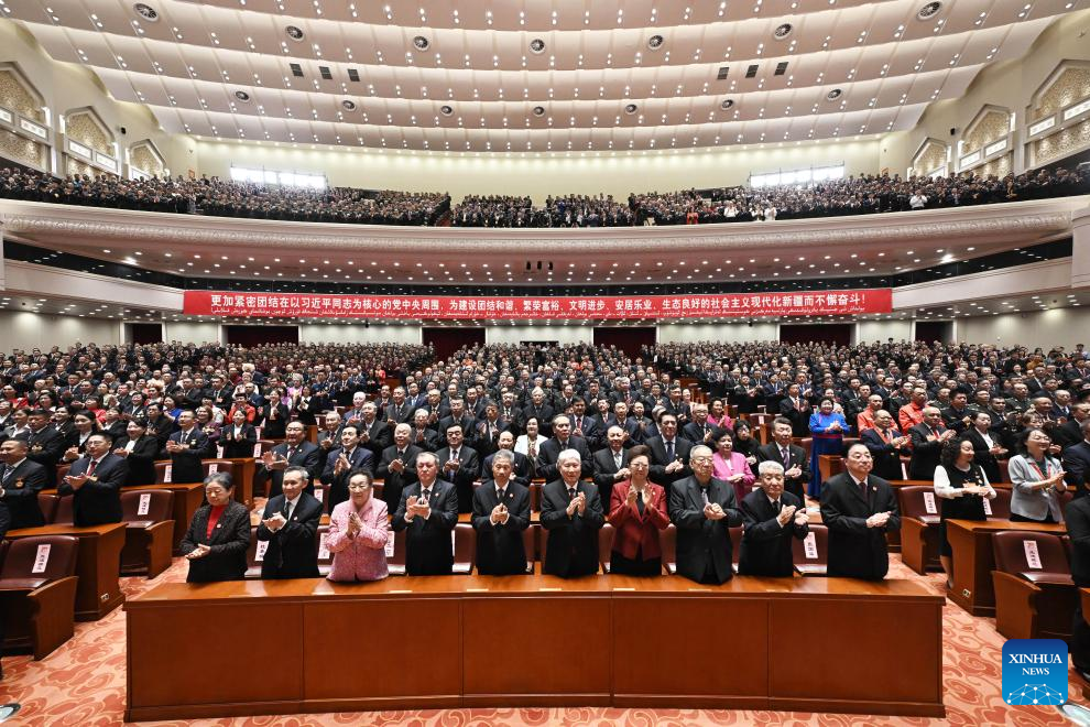 A grand gathering in celebration of the 70th founding anniversary of the Xinjiang Uygur Autonomous Region is held in Urumqi, capital of this region in northwest China, on Sept. 25, 2025. (Xinhua/Shen Hong)