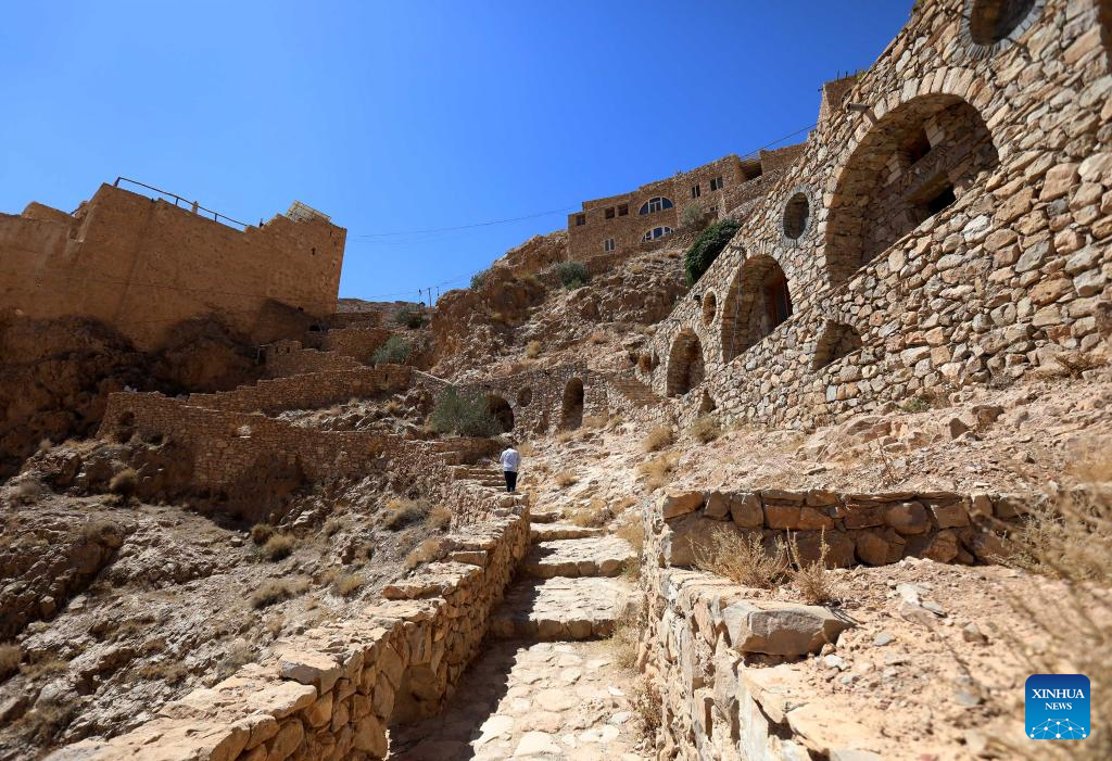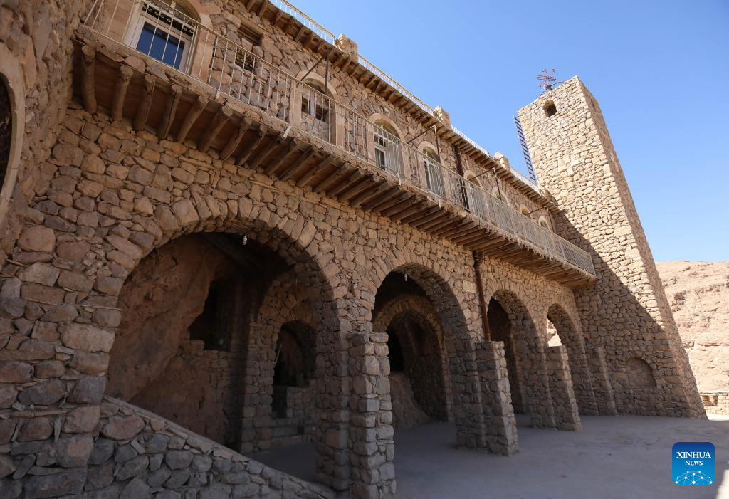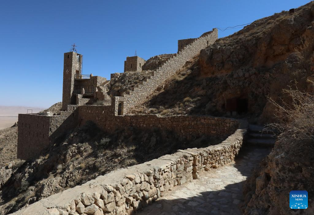 This photo taken on Sept. 22, 2025 shows Deir Mar Musa al-Habashi, an ancient Syriac Catholic monastery, in the Qalamoun mountains, north of Damascus, Syria. (Photo by Ammar Safarjalani/Xinhua)