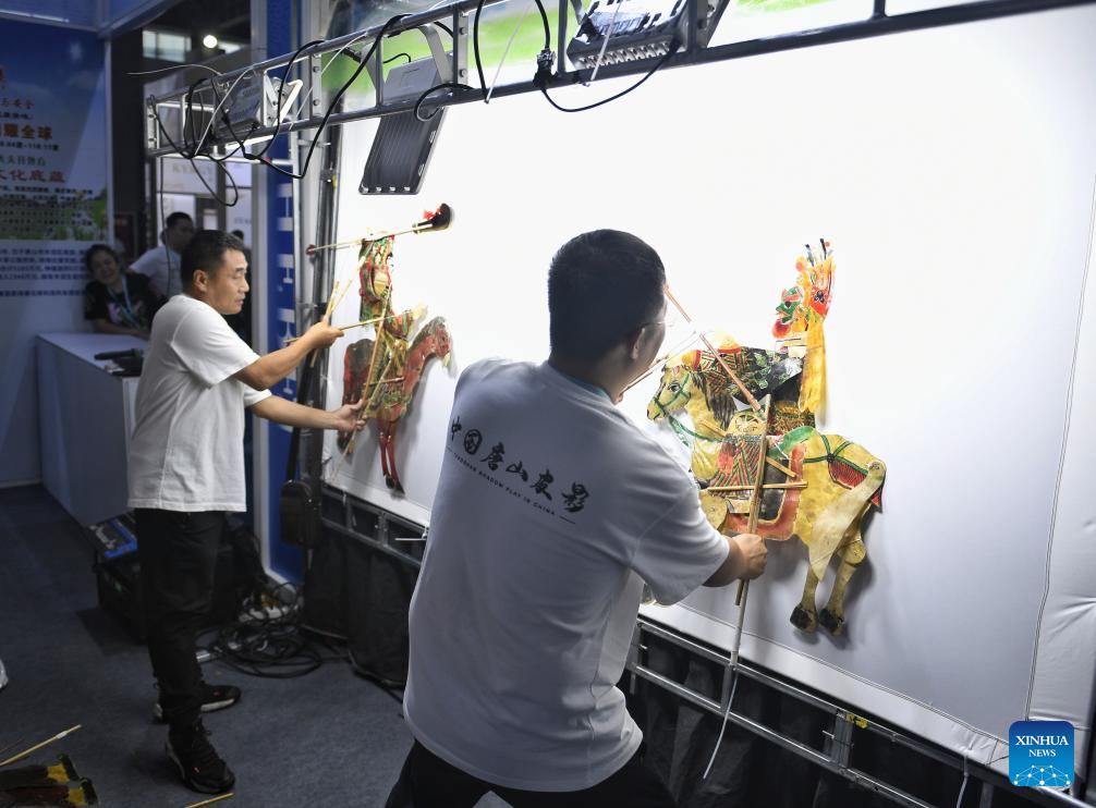 Shadow puppetry artists perform during the 4th International Geographical Indications Products Expo in Luzhou, southwest China's Sichuan Province, Sept. 26, 2025. The event kicked off here on Friday. (Xinhua/Liu Kun)