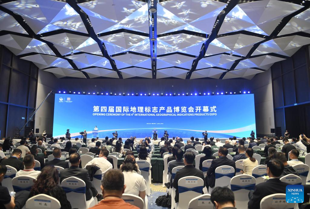 This photo taken on Sept. 26, 2025 shows the opening ceremony of the 4th International Geographical Indications Products Expo in Luzhou, southwest China's Sichuan Province. The event kicked off here on Friday. (Xinhua/Liu Kun)
