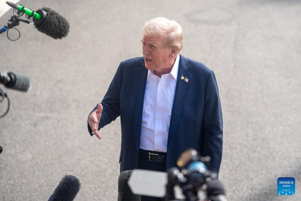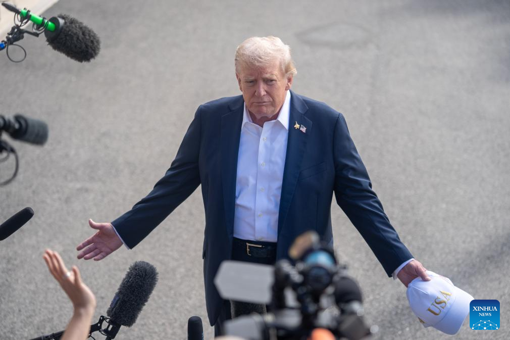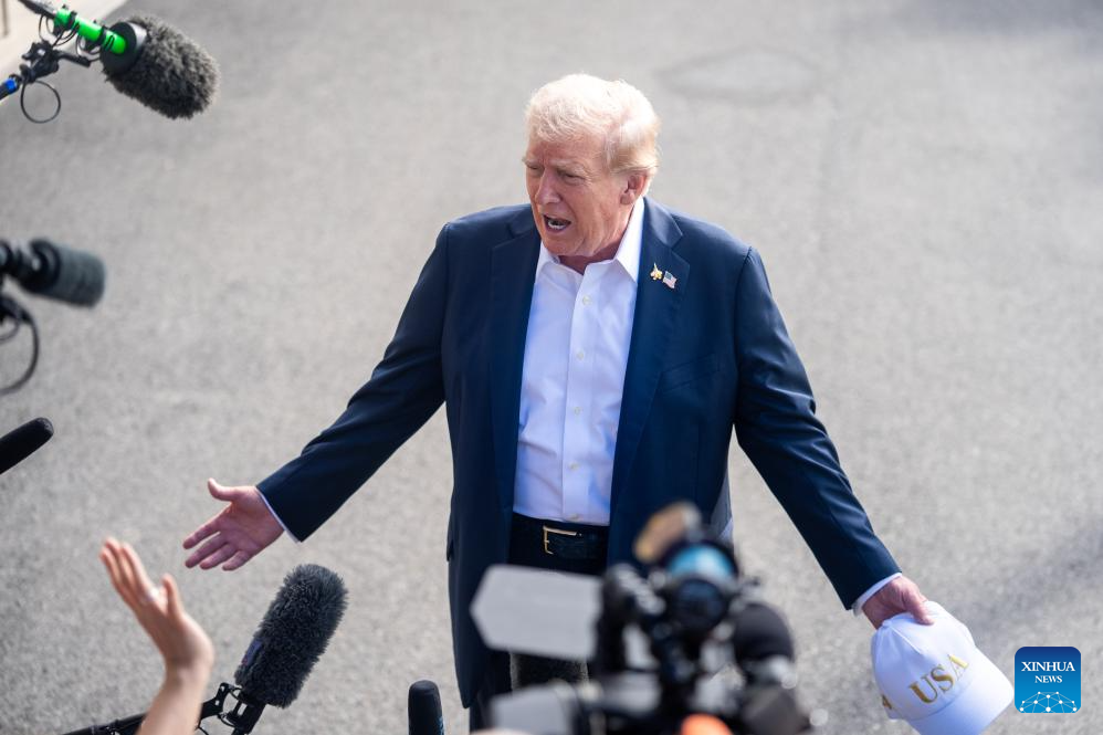 U.S. President Donald Trump speaks to the press upon departure from the White House in Washington, D.C., the United States, on Sept. 26, 2025. (Xinhua/Hu Yousong)