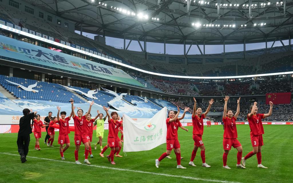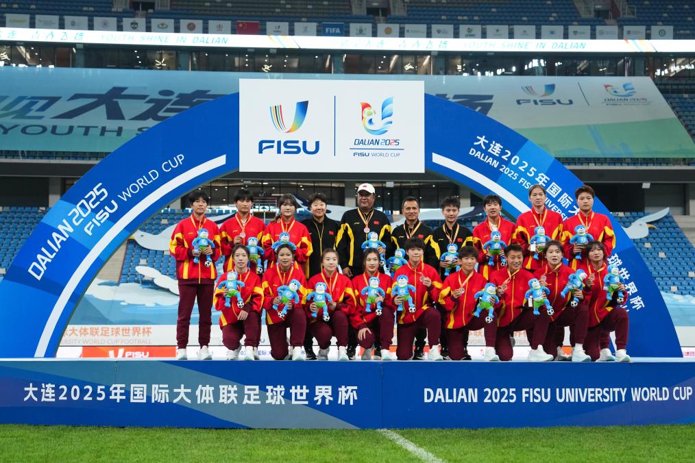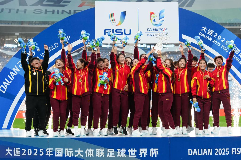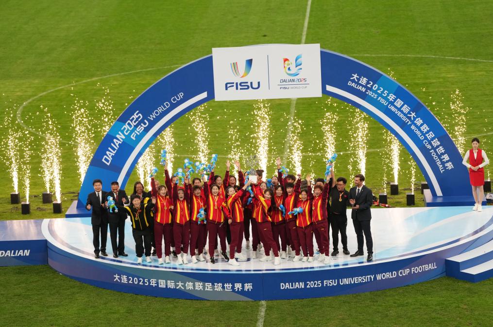 Gold winner Team of Shanghai University of Sport celebrate on the podium during the awarding ceremony after the women's final match between Shanghai University of Sport (China) and Laval University (Canada) of 2025 FISU University World Cup Football in Dalian, northeast China's Liaoning Province, Sept. 27, 2025. (Xinhua/Zheng Huansong)Gold winner Team of Shanghai University of Sport celebrate on the podium during the awarding ceremony after the women's final match between Shanghai University of Sport (China) and Laval University (Canada) of 2025 FISU University World Cup Football in Dalian, northeast China's Liaoning Province, Sept. 27, 2025. (Xinhua/Li Gang)Gold winner Team of Shanghai University of Sport celebrate on the podium during the awarding ceremony after the women's final match between Shanghai University of Sport (China) and Laval University (Canada) of 2025 FISU University World Cup Football in Dalian, northeast China's Liaoning Province, Sept. 27, 2025. (Xinhua/Zheng Huansong)Silver winner Team of Laval University pose on the podium during the awarding ceremony after the women's final match between Shanghai University of Sport (China) and Laval University (Canada) of 2025 FISU University World Cup Football in Dalian, northeast China's Liaoning Province, Sept. 27, 2025. (Xinhua/Zheng Huansong)Bronze winner Team of Beijing Normal University celebrate on the podium during the awarding ceremony after the women's final match between Shanghai University of Sport (China) and Laval University (Canada) of 2025 FISU University World Cup Football in Dalian, northeast China's Liaoning Province, Sept. 27, 2025. (Xinhua/Zheng Huansong)Players of Shanghai University of Sport celebrate a goal during the women's final match between Shanghai University of Sport (China) and Laval University (Canada) of 2025 FISU University World Cup Football in Dalian, northeast China's Liaoning Province, Sept. 27, 2025. (Xinhua/Li Gang)Players of Laval University celebrate a goal during the women's final match between Shanghai University of Sport (China) and Laval University (Canada) of 2025 FISU University World Cup Football in Dalian, northeast China's Liaoning Province, Sept. 27, 2025. (Xinhua/Li Gang)Yin Lihong (front) of Shanghai University of Sport competes during the women's final match between Shanghai University of Sport (China) and Laval University (Canada) of 2025 FISU University World Cup Football in Dalian, northeast China's Liaoning Province, Sept. 27, 2025. (Xinhua/Li Gang)