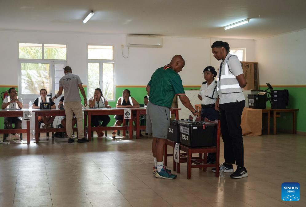 The Indian Ocean archipelago, made up of 115 islands, opened voting on Thursday for residents of outlying islands and essential workers, while polling stations on the three main islands are scheduled to open on Saturday. (Xinhua/Han Xu)