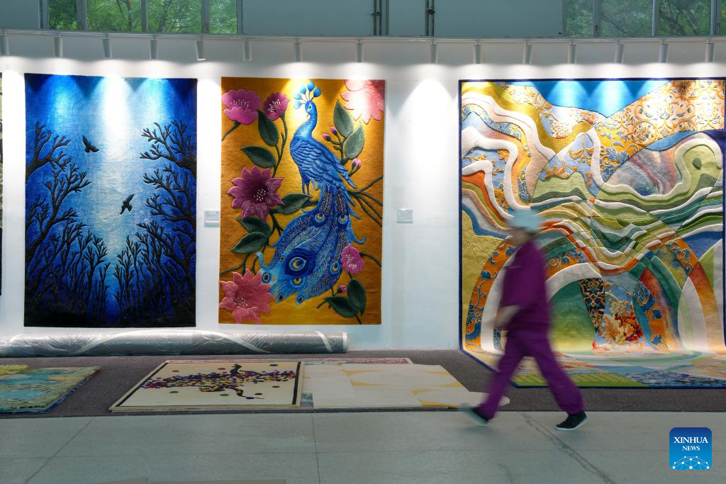 An employee walks past Tibetan carpets displayed at a workshop of Shengyuan carpet group in Xining, northwest China's Qinghai Province, Sept. 27, 2025. Tibetan carpet is a traditional handicraft on the Qinghai-Tibetan Plateau with a history of more than 1,000 years. The carpets are essential items for the nomadic people on the plateau to withstand the cold. The fine yak and sheep wool and the delicate weaving skills and patterns made the handmade products popular among overseas and domestic customers.