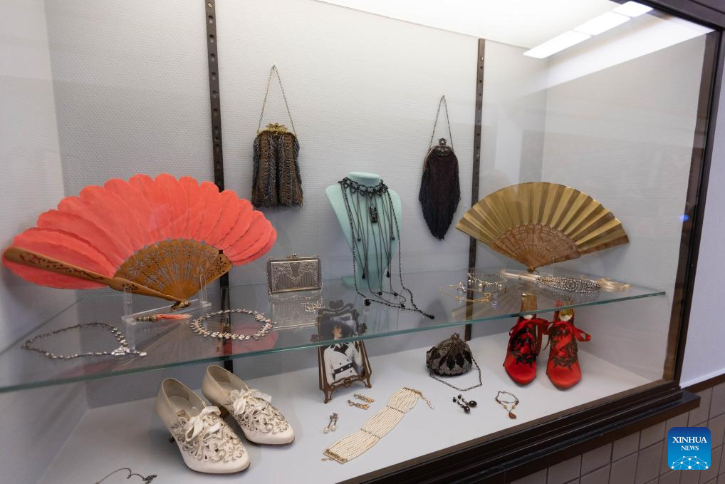 Exhibits are pictured during a media preview of the exhibition "Titanic & Fashion: The Last Dance" in The Hague, the Netherlands, Sept. 25, 2025. The exhibition, which will be open to the public on Saturday and run through to Jan. 25, 2026, gathers around 15 original costumes from the 1997 Oscar-winning film "Titanic," rare historical clothing in the 1910s from the museum's collection, and modern works by about 25 contemporary designers. (Photo by Sylvia Lederer/Xinhua)