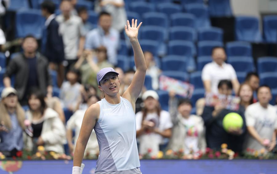 BEIJING, Sept. 27 (Xinhua) -- Top-seeded men's player Jannik Sinner and women's player Iga Swiatek both sailed into the singles third round at the 2025 China Open here on Saturday, while home favorite Zheng Qinwen came back from surgery to beat Colombia's Emiliana Arango.