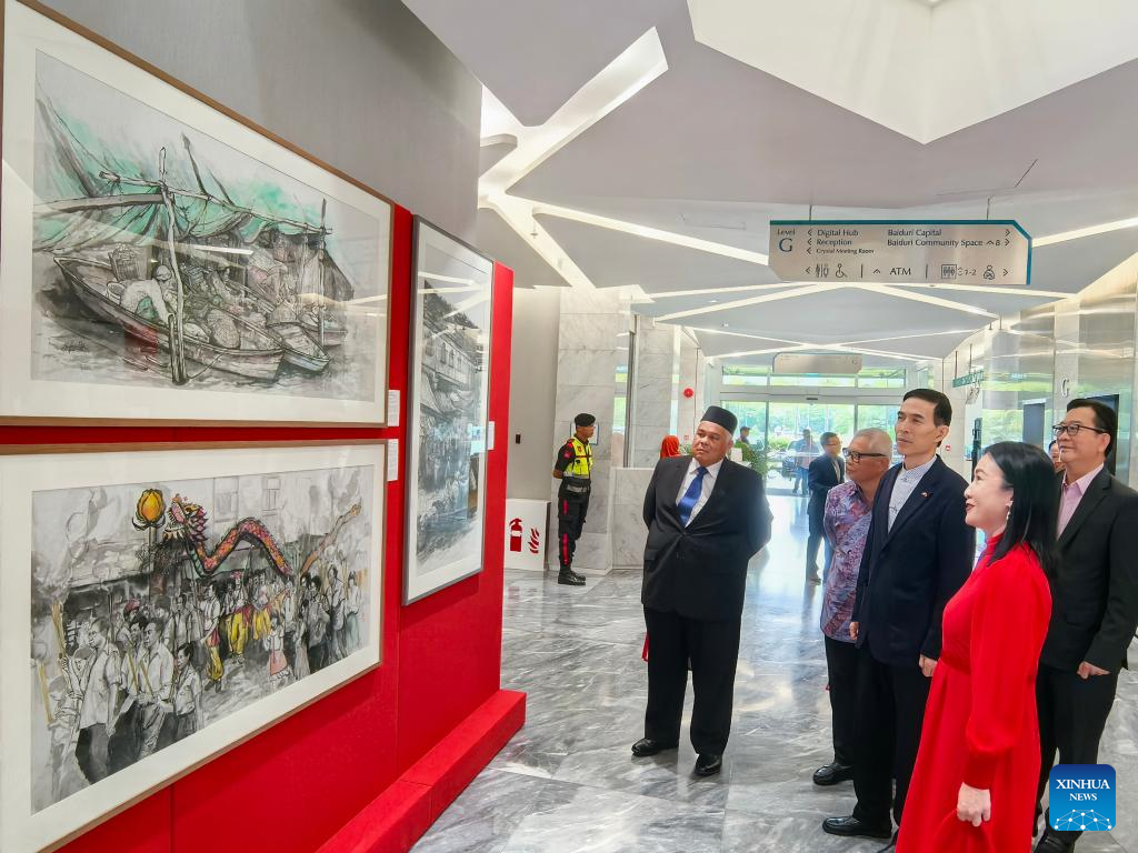 The event features a Brunei-China calligraphy and painting exhibition and an art exhibition. (Chinese Embassy in Brunei/Handout via Xinhua)