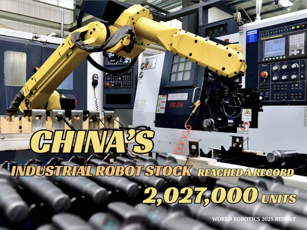 China's industrial robot stock reached a record 2,027,000 units in 2024, according to the World Robotics 2025 report released by the Frankfurt-based International Federation of Robotics.