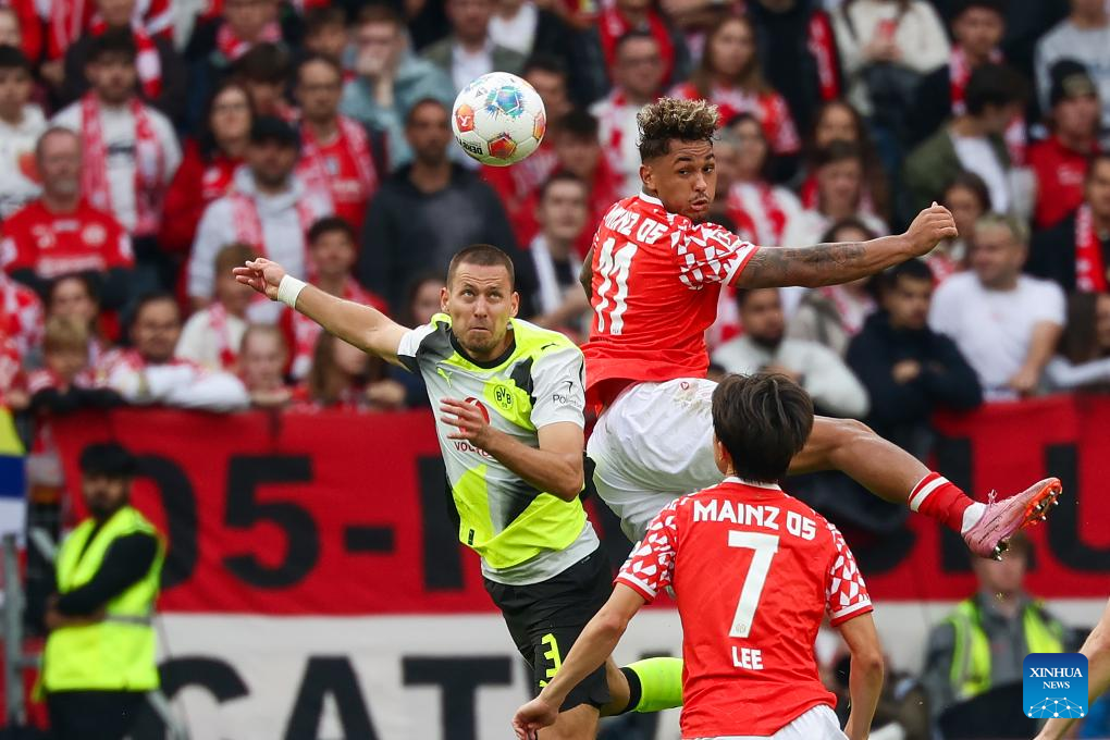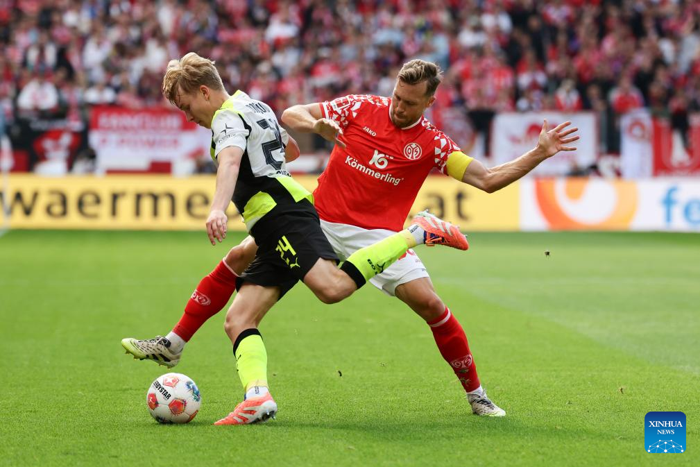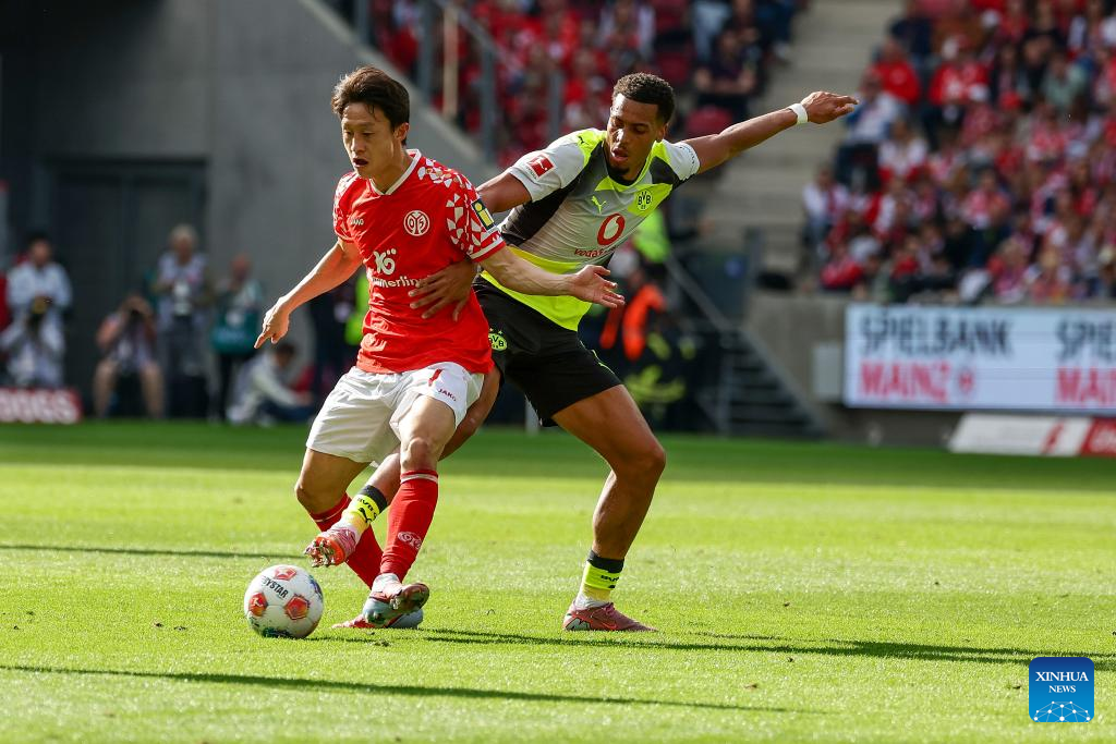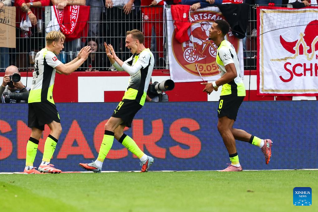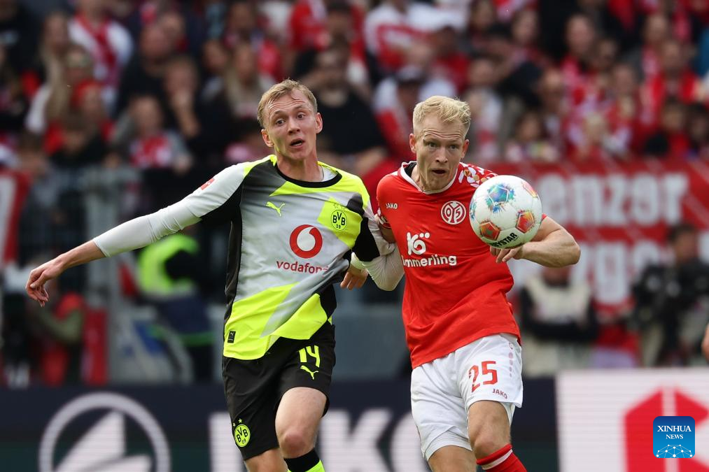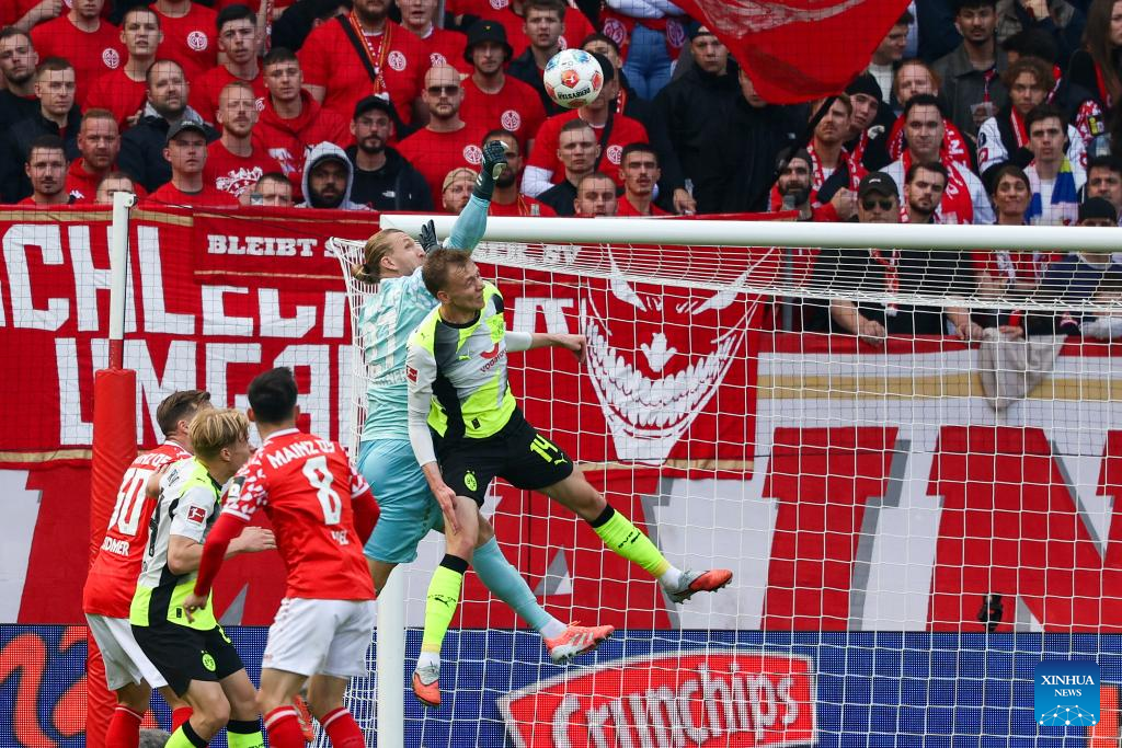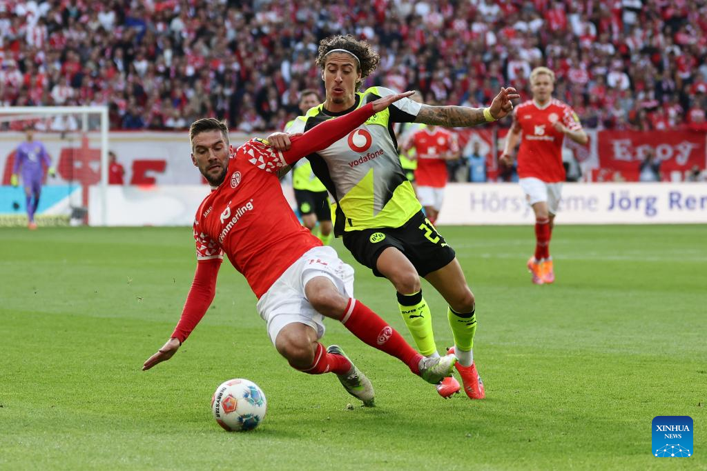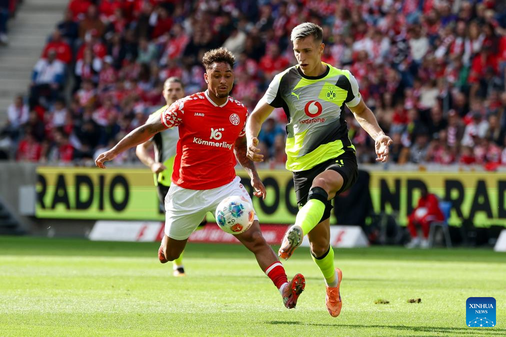 BERLIN, Sept. 27 (Xinhua) -- Borussia Dortmund maintained their strong early-season momentum with a 2-0 win at Mainz, sealing a fourth straight Bundesliga triumph on Saturday.