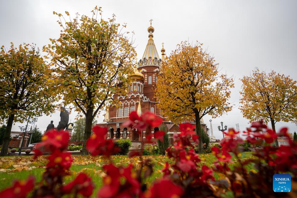This photo shows St. Michael's Cathedral in Izhevsk, Udmurtia, Russia, Sept. 26, 2025.