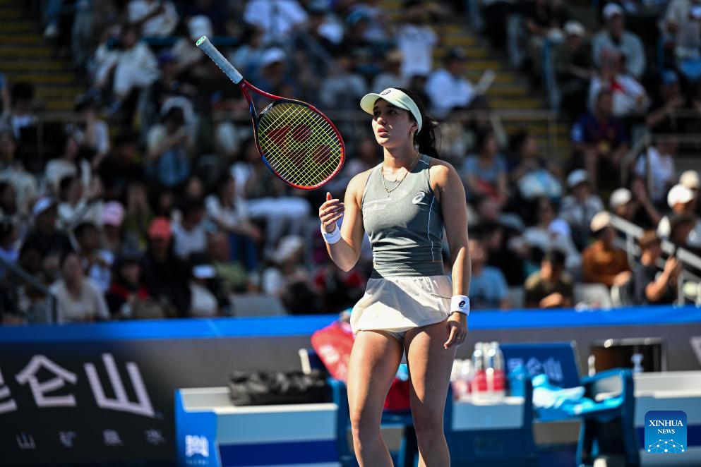 Eva Lys of Germany tosses her racket during the women's singles third round match between Elena Rybakina of Kazakhstan and Eva Lys of Germany at 2025 China Open tennis tournament in Beijing, China, Sept. 28, 2025. (Xinhua/Xin Mengchen)