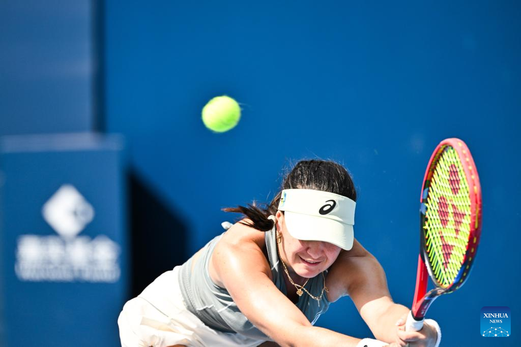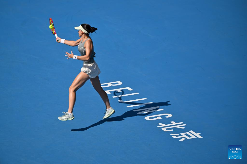 Eva Lys of Germany hits a return during the women's singles third round match between Elena Rybakina of Kazakhstan and Eva Lys of Germany at 2025 China Open tennis tournament in Beijing, China, Sept. 28, 2025. (Xinhua/Xin Mengchen)