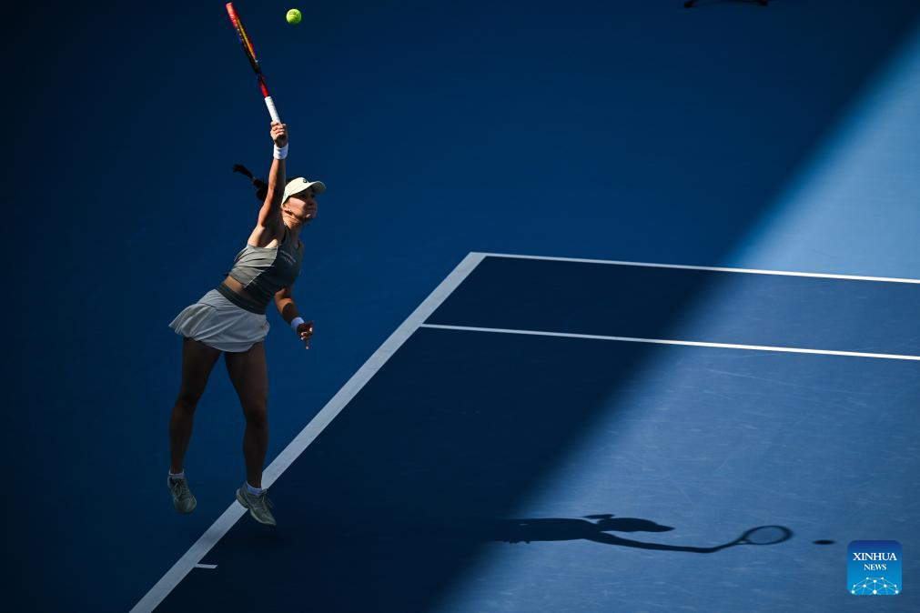 Eva Lys of Germany serves during the women's singles third round match between Elena Rybakina of Kazakhstan and Eva Lys of Germany at 2025 China Open tennis tournament in Beijing, China, Sept. 28, 2025. (Xinhua/Xin Mengchen)