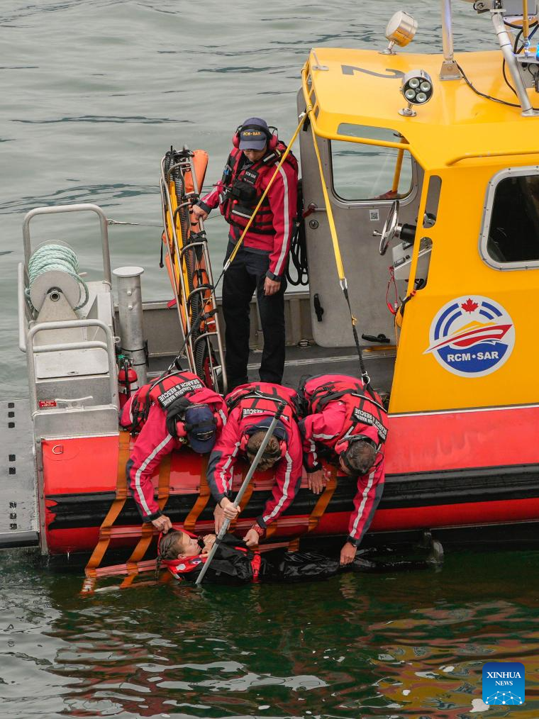 Members of the Royal Canadian Marine Search and Rescue perform a rescue demonstration off Canada Place during Port Day in Vancouver, British Columbia, Canada, Sept. 27, 2025.