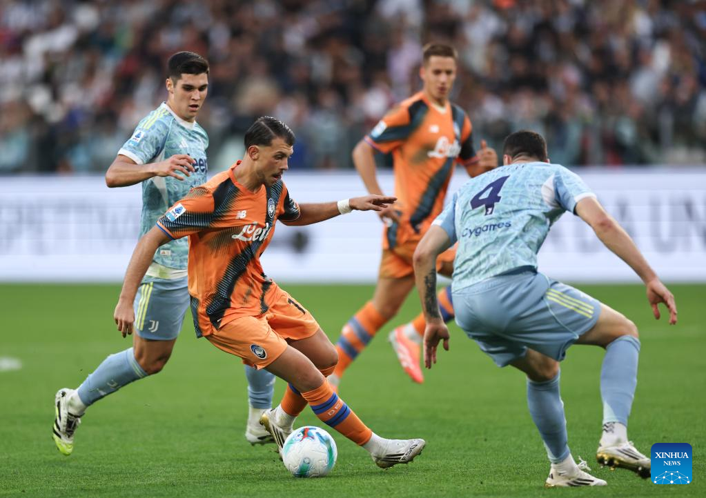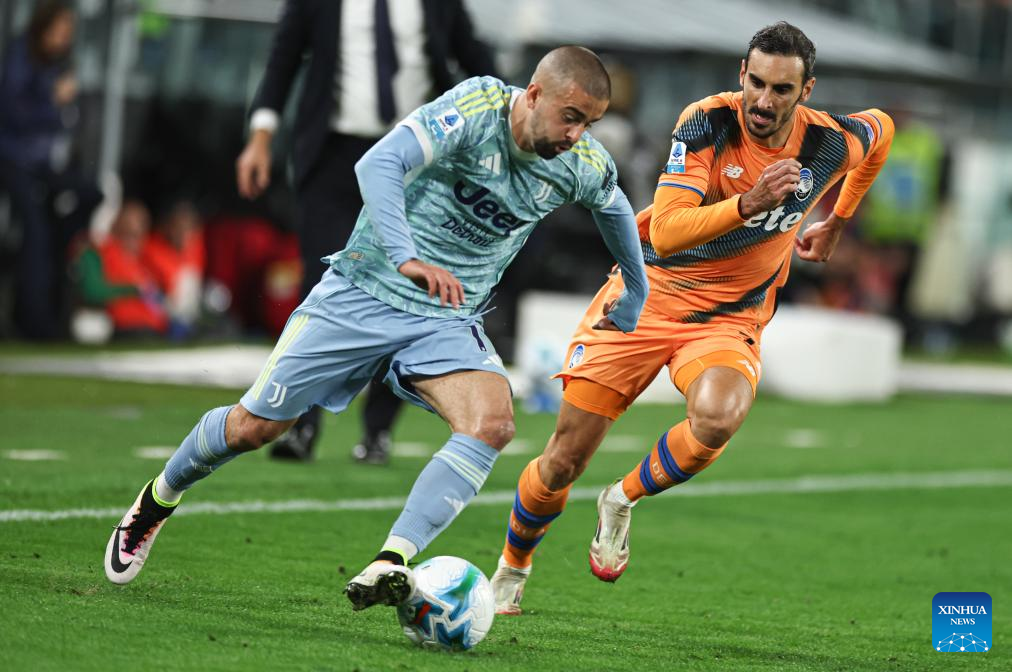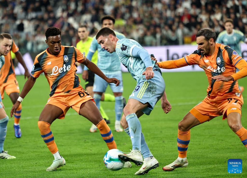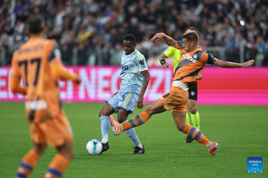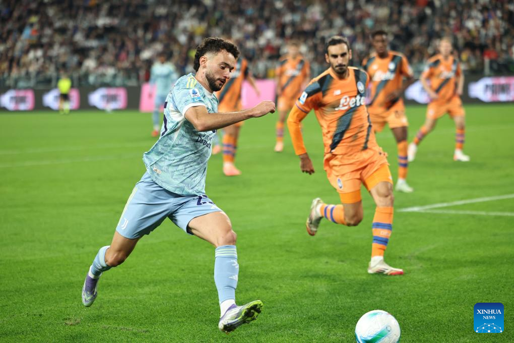 Atalanta's Lazar Samardzic (2nd L) controls the ball during a Serie A football match between Juventus and Atalanta in Turin, Italy, Sept. 27, 2025. (Xinhua/Li Jing)