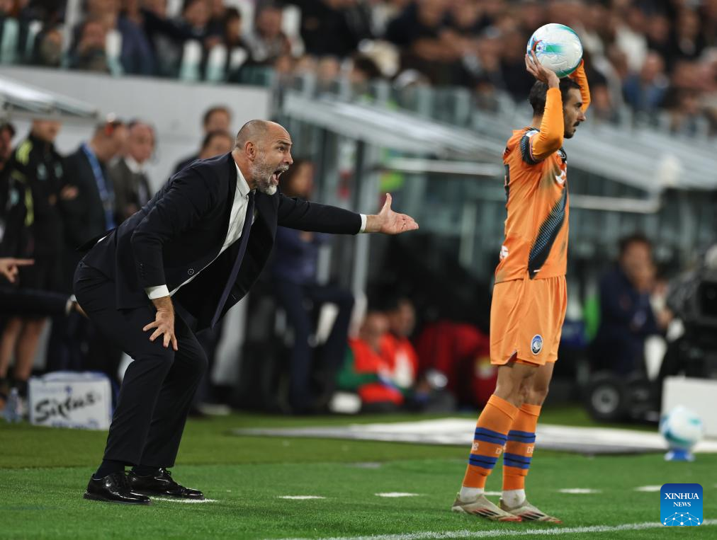 Juventus' head coach Igor Tudor (L) reacts during a Serie A football match between Juventus and Atalanta in Turin, Italy, Sept. 27, 2025. (Xinhua/Li Jing)