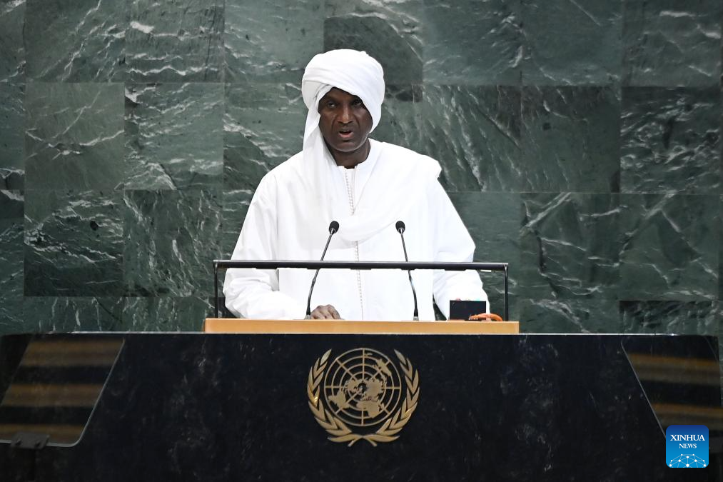Nigerien Prime Minister Ali Mahaman Lamine Zeine delivers a speech during the General Debate of the 80th session of the United Nations General Assembly (UNGA) at the UN headquarters in New York on Sept. 27, 2025. (Xinhua/Li Rui)
