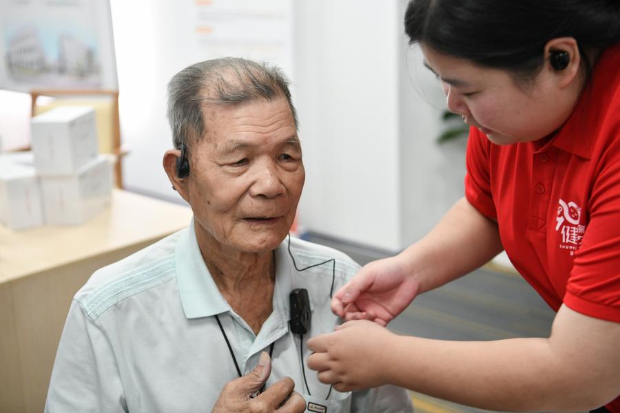 TAIYUAN, Sept. 28 (Xinhua) -- In a hearing aid store in Taiyuan City, north China's Shanxi Province, 70-year-old Zhang Wei heard his granddaughter's voice clearly for the first time in years. Thanks to an artificial intelligence (AI)-powered hearing aid, the elderly man with age-related hearing loss has reentered a world of sound.