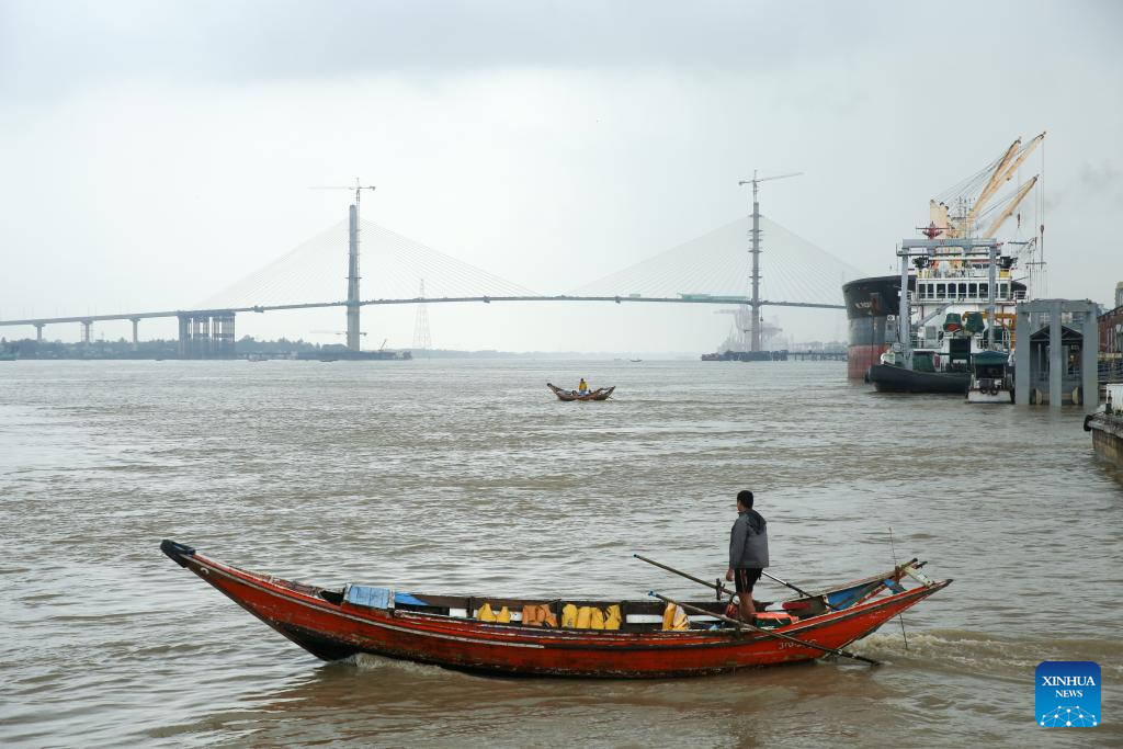 Boats are seen on the Yangon River in Yangon, Myanmar, Sept. 28, 2025. (Xinhua/Myo Kyaw Soe)
