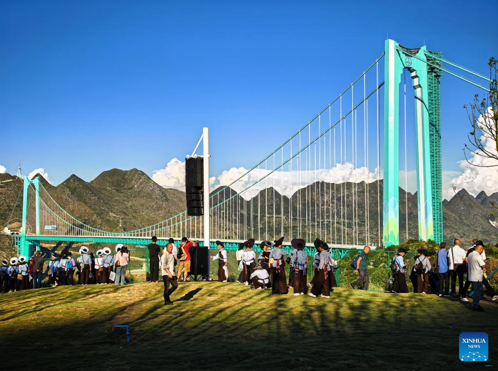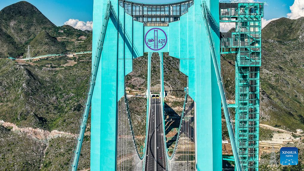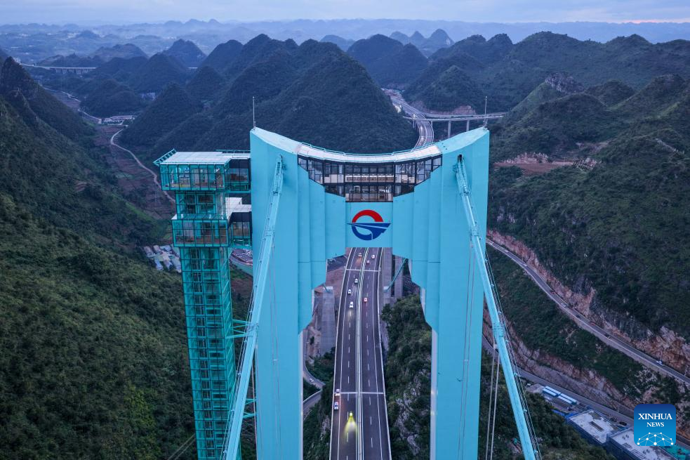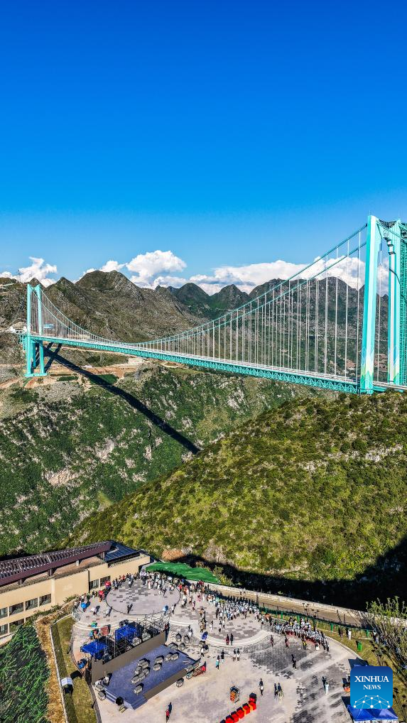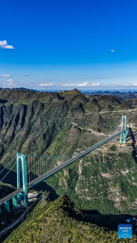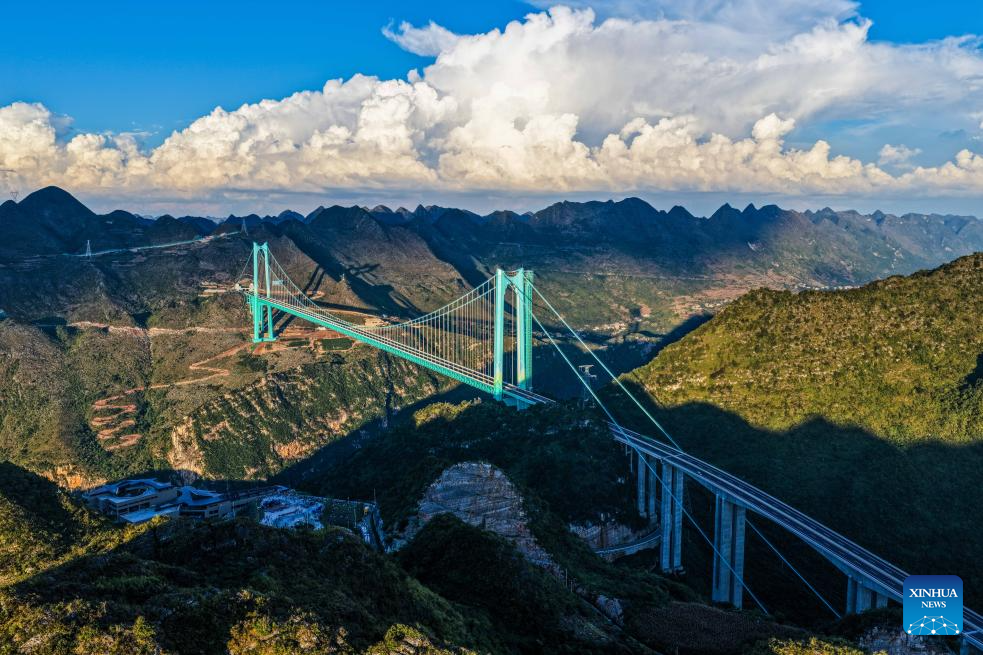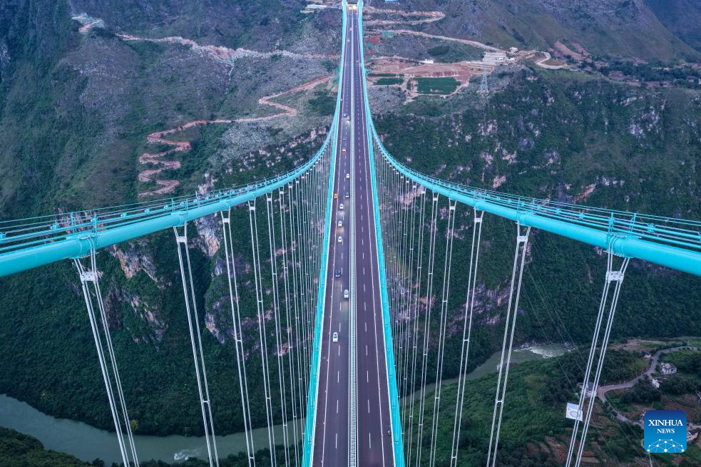 GUIYANG, Sept. 28 (Xinhua) -- The world's tallest bridge opened to traffic Sunday morning in southwest China's Guizhou Province, slashing travel time across a deep canyon from two hours to just two minutes after three years of construction.