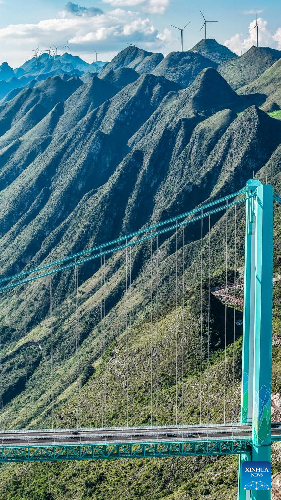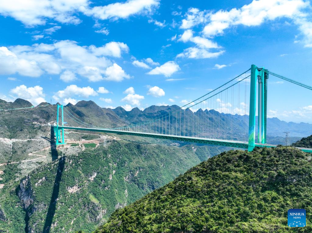 Spanning the Huajiang Grand Canyon, dubbed "the Earth's crack," the 2,890-meter-long structure is the latest addition to the rapidly expanding infrastructure network of the world's second-largest economy.