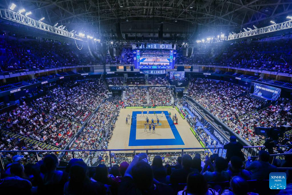 Players compete during the final match between Italy and Bulgaria at the FIVB Men's World Championship 2025 in Pasay City, the Philippines, Sept. 28, 2025. (Xinhua/Rouelle Umali)