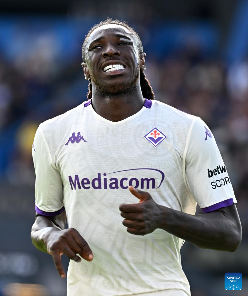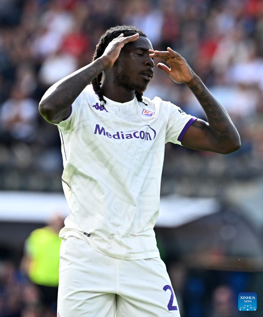 Fiorentina's Moise Kean reacts during a Serie A soccer match between Pisa and Fiorentina in Pisa, Italy, Sept.28, 2025. (Xinhua)