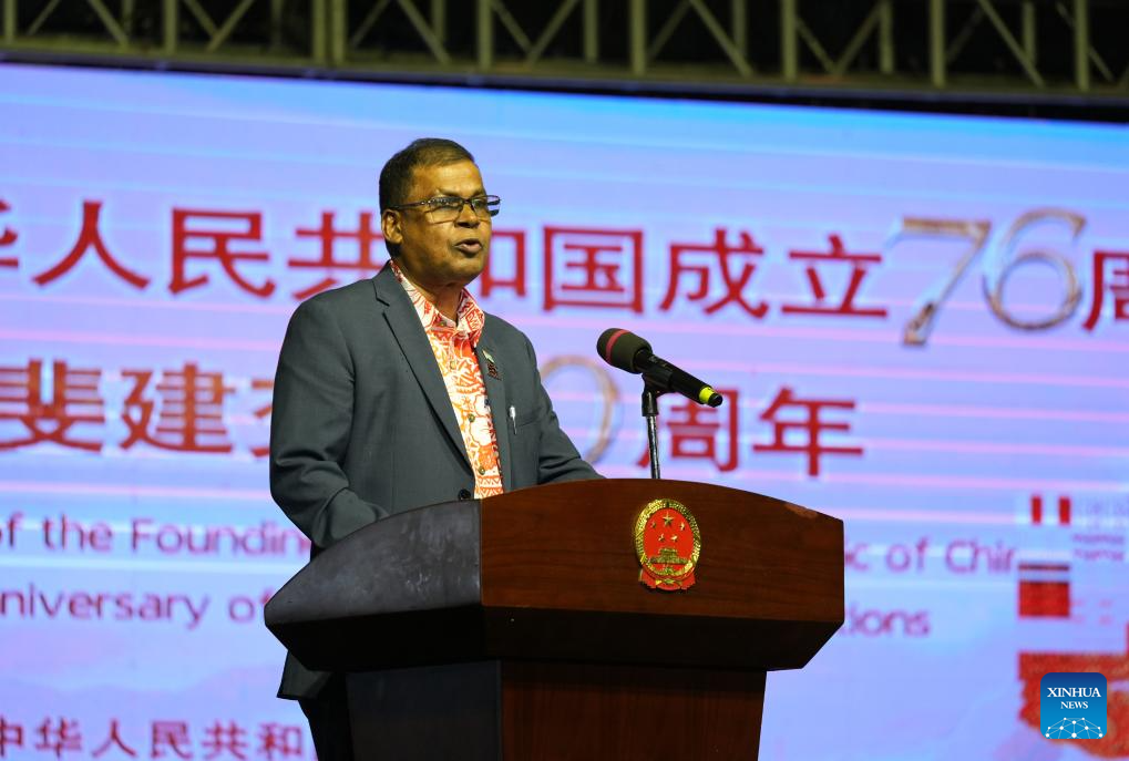 SUVA, Sept. 29 (Xinhua) -- Biman Prasad, Fiji's acting prime minister and minister for finance, strategic planning, national development, and statistics, has reaffirmed Fiji's strong and enduring ties with China as the two nations celebrated 50 years of diplomatic relations and the 76th anniversary of the founding of the People's Republic of China.