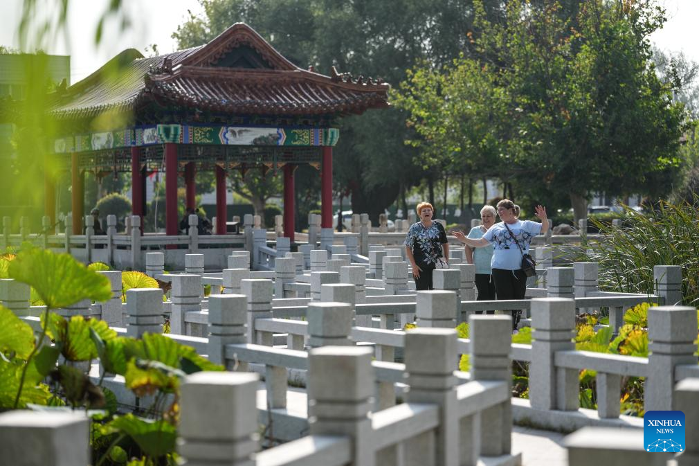 Russian tourists visit a scenic area in Hunchun, northeast China's Jilin Province, Sept. 28, 2025. In several traditional Chinese medicine hospitals across northeast China, the number of Russian patients seeking treatment and rehabilitation continues to grow. Traditional Chinese medicine, with its unique diagnostic and therapeutic methods, is increasingly favored by Russian patients.
