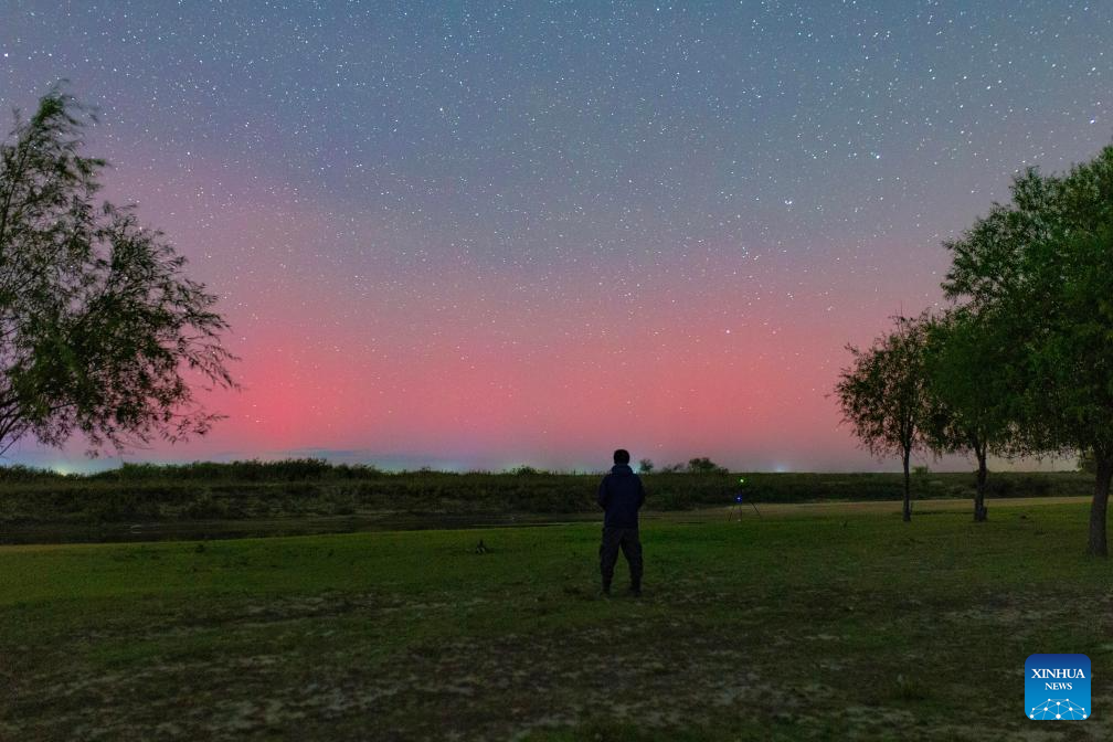 This photo taken on Sept. 30, 2025 shows a view of the aurora in Jiamusi City, northeast China's Heilongjiang Province. (Photo by Liu Wanping/Xinhua)