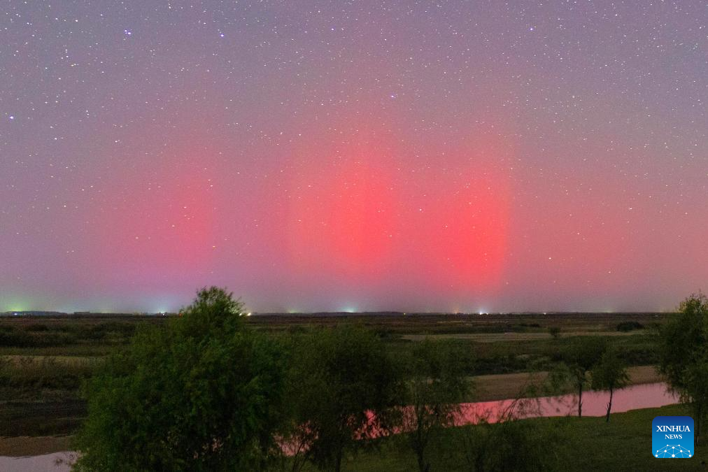 This photo taken on Sept. 29, 2025 shows a view of the aurora in Jiamusi City, northeast China's Heilongjiang Province. (Photo by Qu Yubao/Xinhua)
