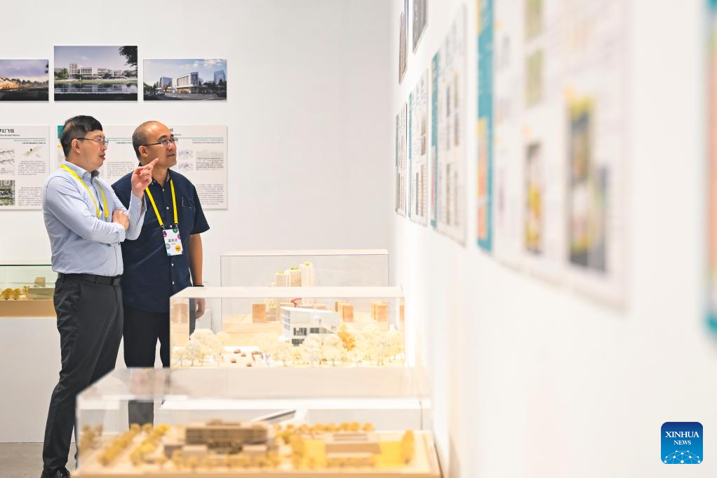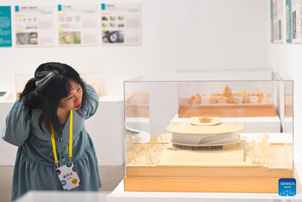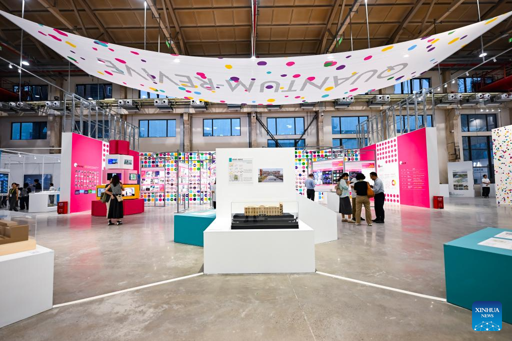 This photo taken on Sept. 30, 2025 shows an exhibition of Shanghai Urban Space Art Season 2025 in Shanghai, east China. Sci-tech design exhibition, art show, drone performance and light show are scheduled to be held during the event. (Xinhua/Chen Haoming)